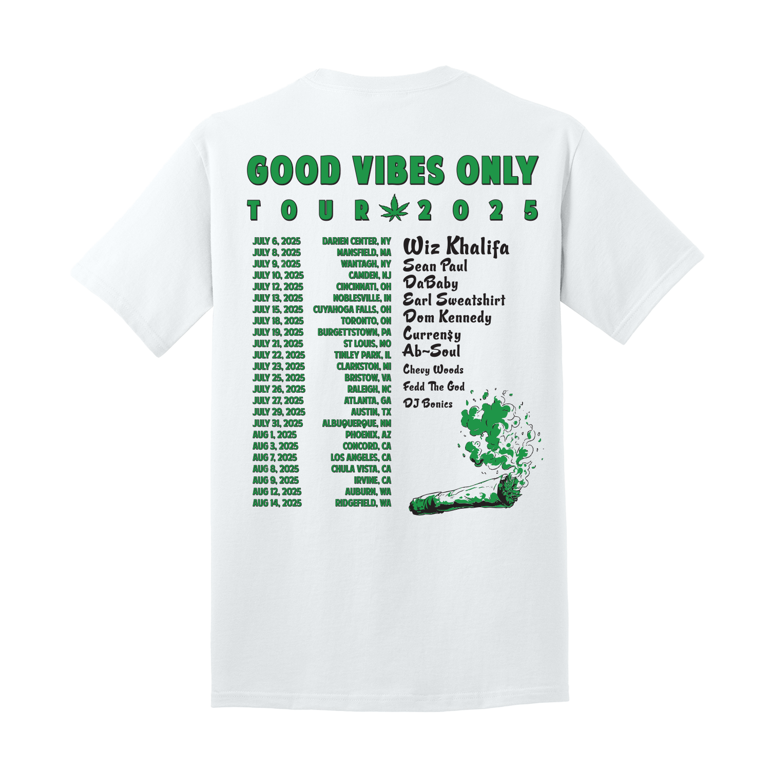 Heavyweight 100% cotton, oversized t-shirt with GVO stereo design on the front and the tour dates on the back.